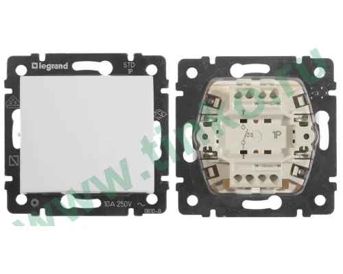 Short description: Momentary switch, 1-gang, U-nom. 250 V, I-rated 10 A, flush-mounted, without frame, white