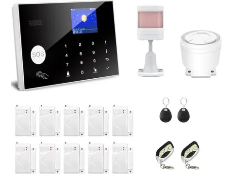 Specifically designed for garages, this comprehensive system includes a GSM alarm unit, wireless remote control, battery, wired door contact sensor, wired motion sensor, sound and light alarms, and a 65-foot (20-meter) mounting cable plus a USB cable for configuration. With four wired and six wireless zones, this system can expand as needed and supports additional power outputs for wireless outlets and sirens. Engineered for sub-freezing temperatures, it’s also suitable for small offices or residential properties requiring robust security. -