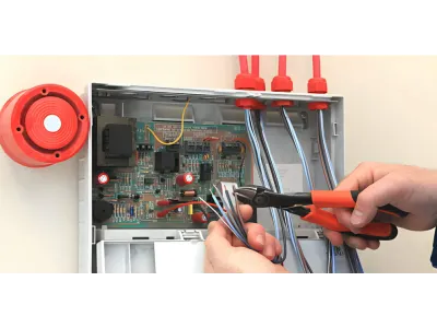 The system comprises sensors, control panels, sirens, wiring, and power systems.