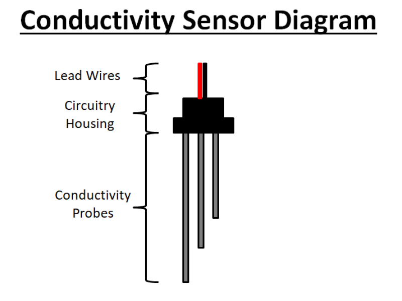 Each electrode immerses at a distinct level; once submerged, its circuit is “closed,” indicating that particular threshold has been reached.