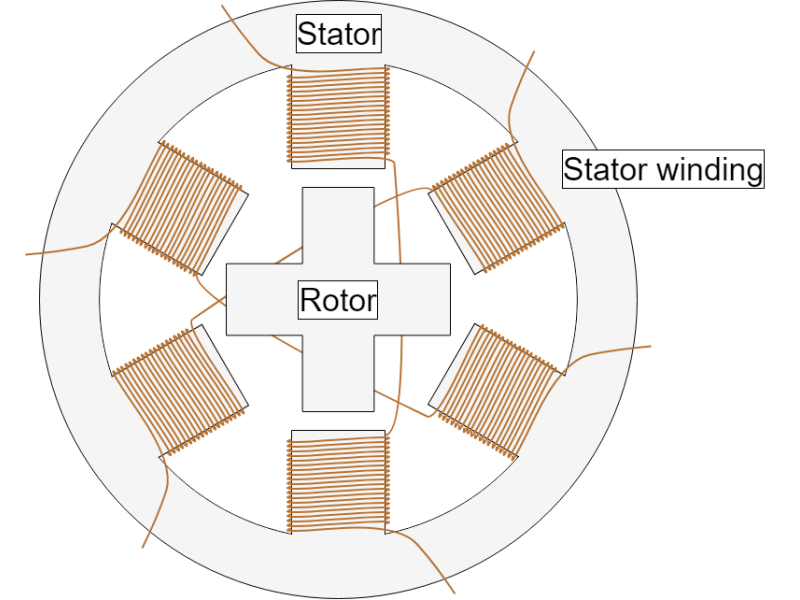 1️⃣ Stator – Stationary part with multiple electromagnetic coils